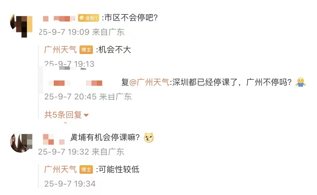 关于其他区台风预警信号是否会升级为黄色,@广州天气表示:“机会不大”。